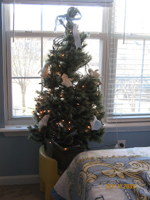 Our little 4 footer I told ya about! This year its up in the spare room. You can see it thru the front window and it looks so pretty!